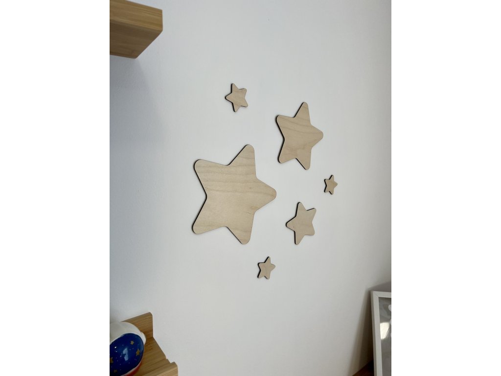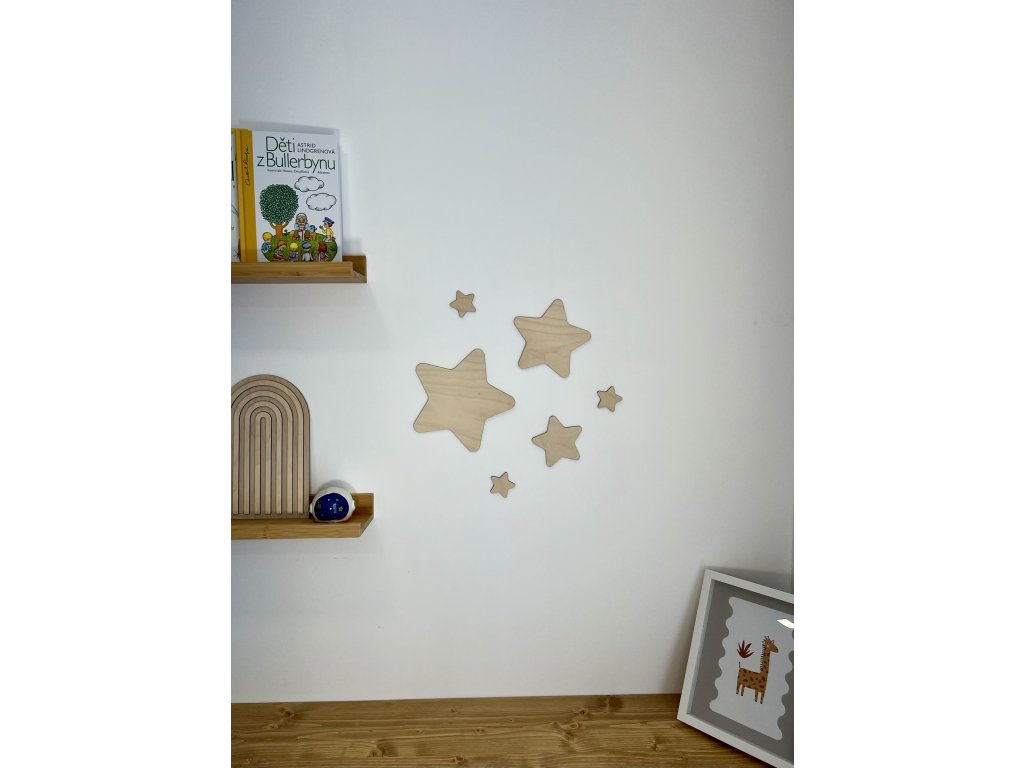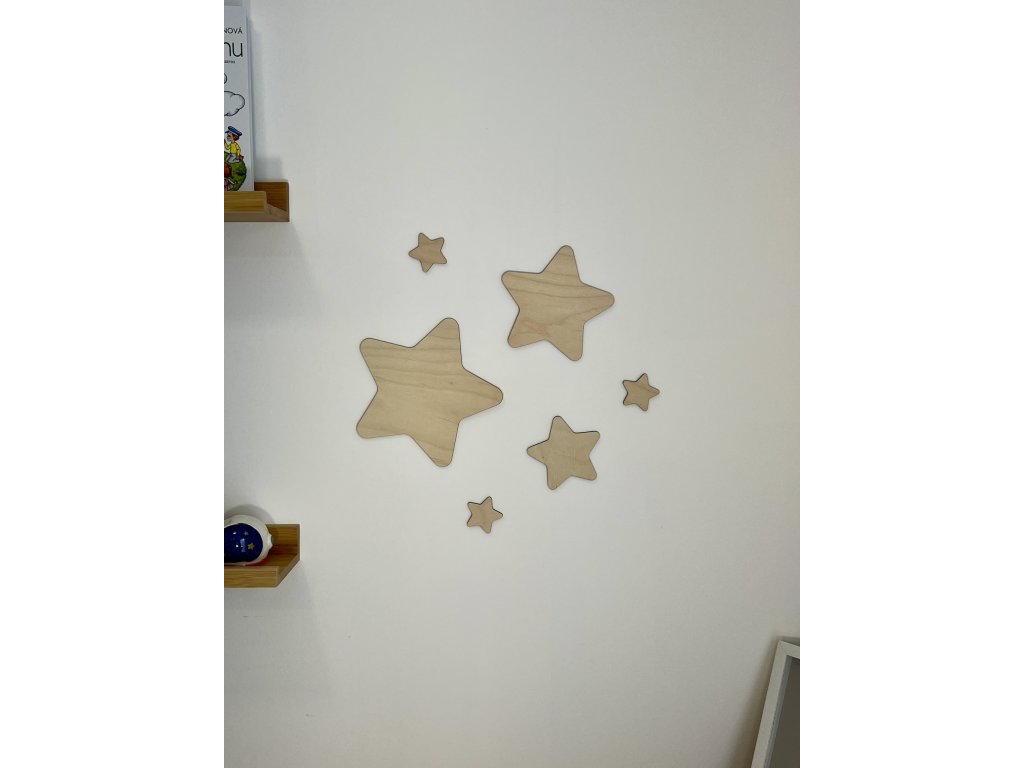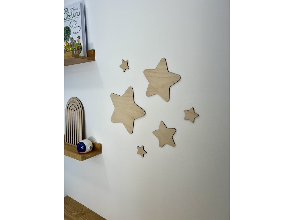 Zaoblené hvězdičky vyrobené z březové překližky o tloušťce 3 mm. Dřevěná dekorace do dětského pokojíčku.