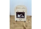 Dřevěná milníková kartička se jménem, údaji o narození Vašeho děťátka a s prostorem na umístění náramku z porodnice. Milník dodáván včetně stojánku pro snadnější umístění....