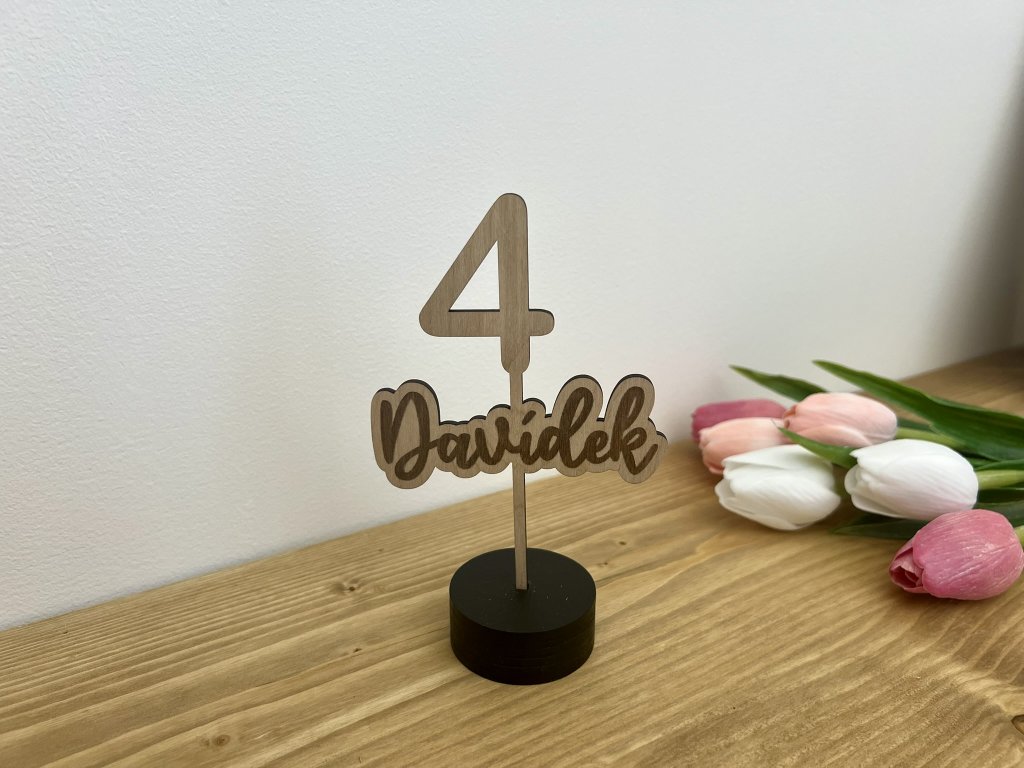 Zápich do narozeninového dortu - číslo se jménem oslavence. Možnost výběru ze čtyř velikostí.