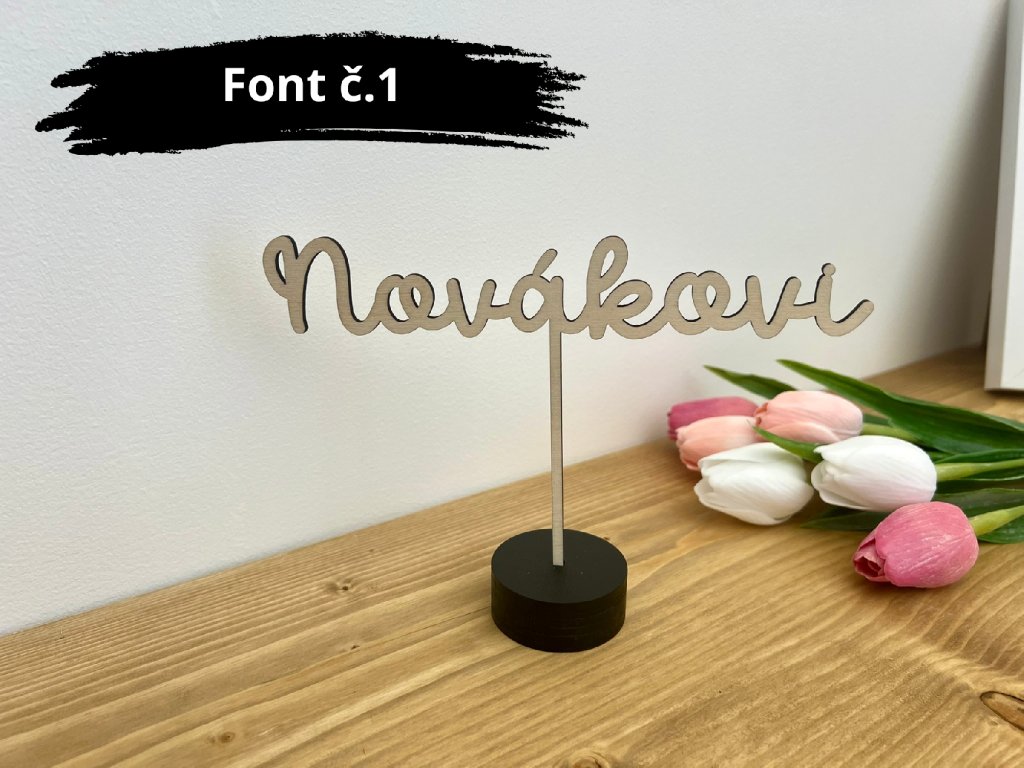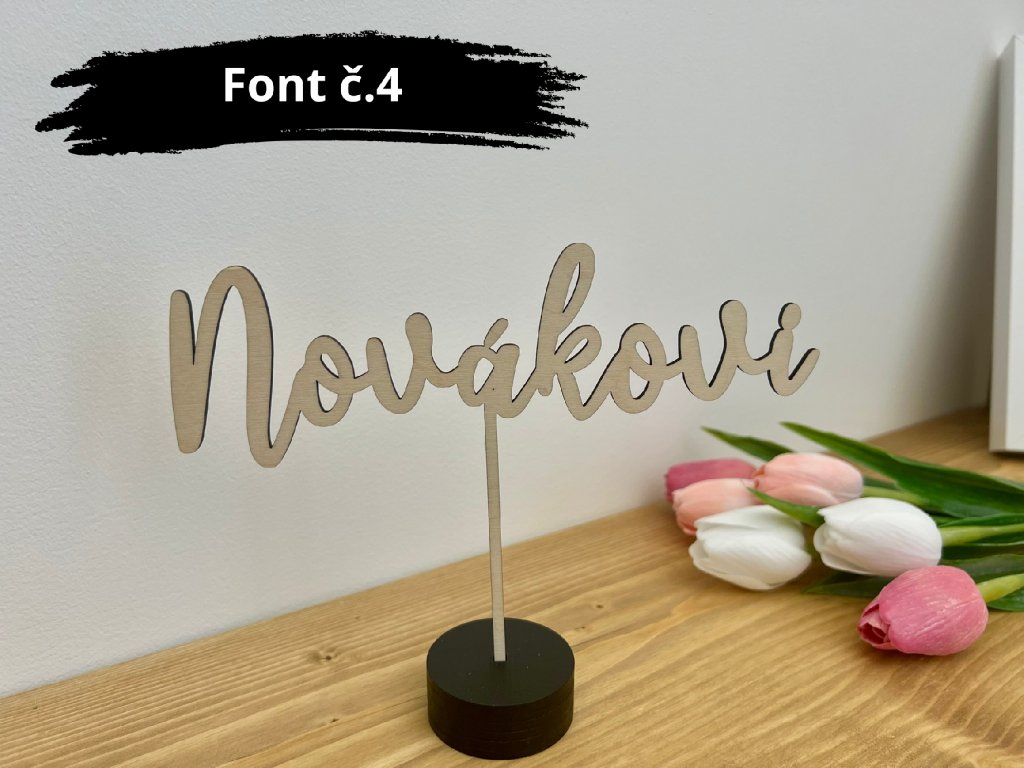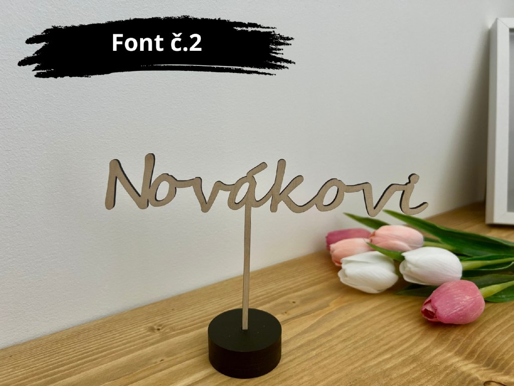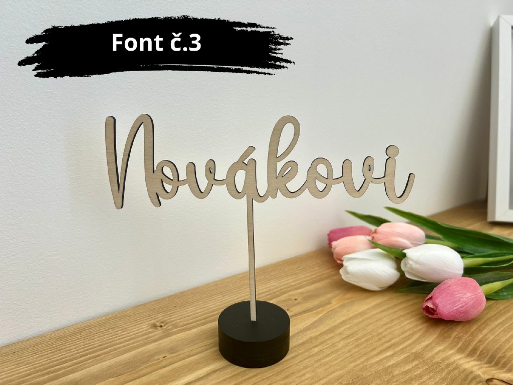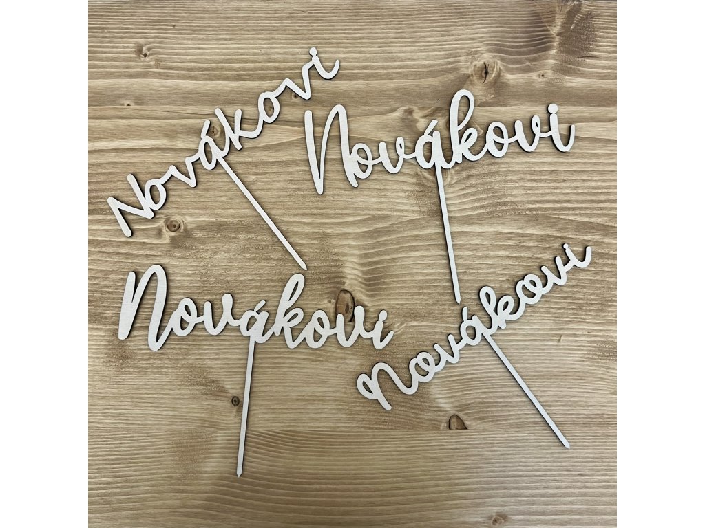 Dortový zápich s Vaším příjmením jako dekorace na svatební dort. Možnost výběru ze třech velikostí a čtyř stylů písma.