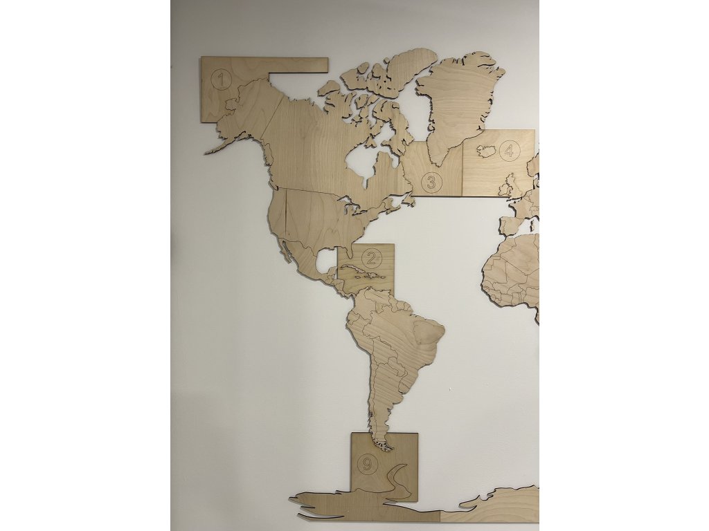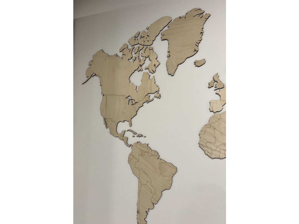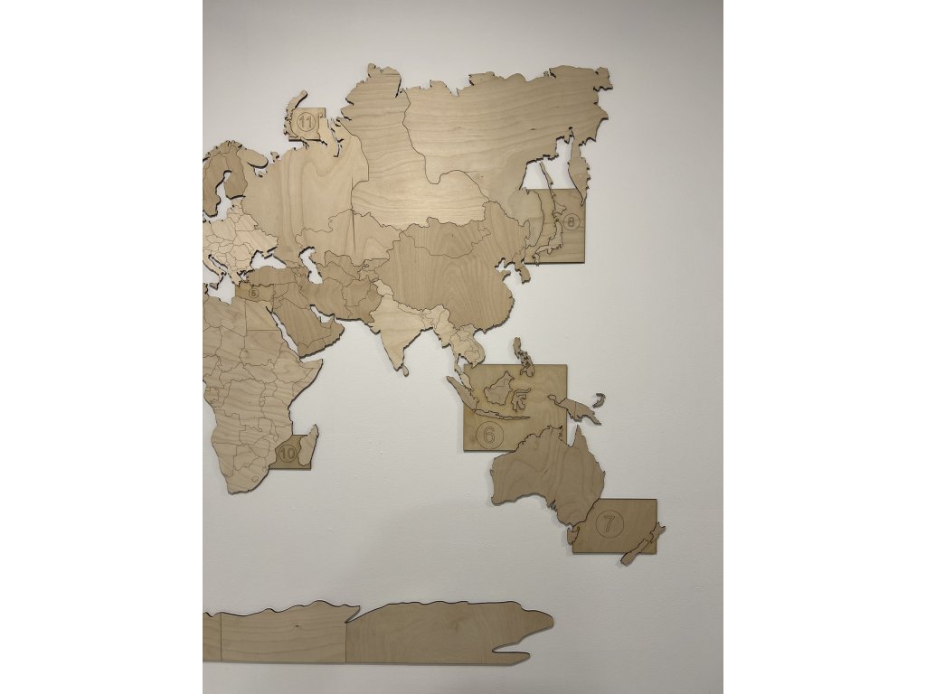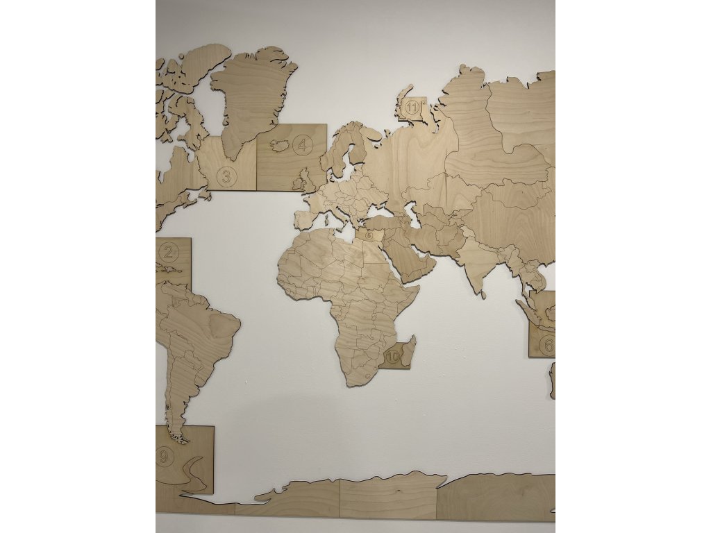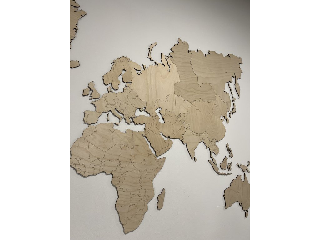 Krásná a velká dekorace na zeď do Vašeho domu nebo bytu, vyrobená z březové překližky tl. 3 mm. Mapa je složená z více dílů což usnadňuje přepravu (největší rozměr jednoho dílu je 36 x 35 cm). Možnost volby mezi dvěma variantami a to s Antarktidou nebo bez. Upevnění na zeď pomocí oboustranné pásky (není součástí).