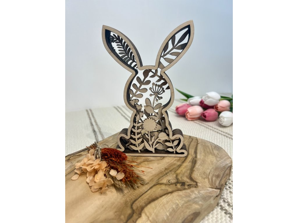 Velikonoční dekorace - vrstvený zajíček. Zajíček se skládá celkově ze 7 vrstev překližky a díky tomu vytváří krásný 3D efekt.